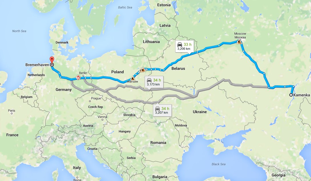 Die Reise lange vom Herrn Fischer von Kamenka zum Bremerhaven um von dort nach Argentinien zu gelangen. Leider wollte Google Maps bei dieser Route nicht mitmachen. Deswegen ist es jetzt ein Bild. Hier ein Link zur Google Map.